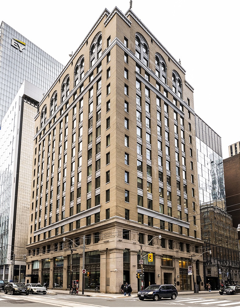 This 1920s boutique heritage building is ideally located near the Eaton Centre in downtown Toronto, surrounded by hotels, restaurants, cafés, and the PATH system. In 2024, the property underwent a comprehensive restoration, including façade, lobby, and washroom renovations, as well as an upgrade to the flagship retail space now occupied by Milos, a high-end Mediterranean restaurant. The building also participates in a $136 million financing program with the Canada Infrastructure Bank aimed at reducing greenhouse gas emissions across the portfolio.